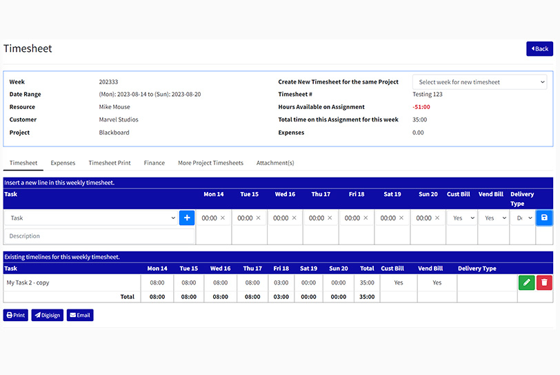 - Custom timesheet templates (Customisable per customer or project, with approvers and DigiSign)